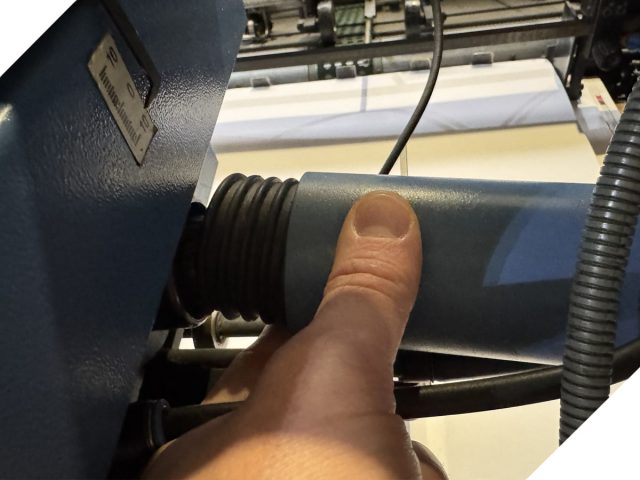 Manual lubrication required at numerous points; forgetting it led to wear, play, and sheet loss inside the press. Strangely enough, this problem was observed on ALL first-generation Rapida 75 printing presses manufactured between 2008 and 2010 that were inspected.