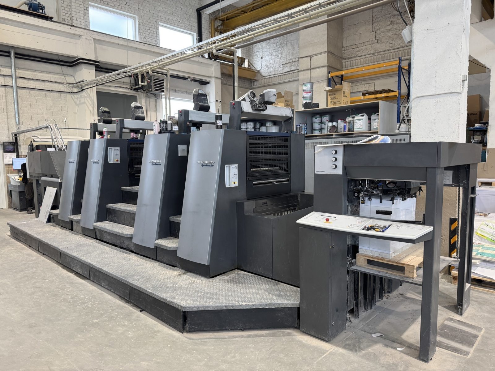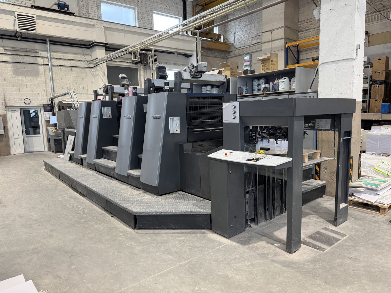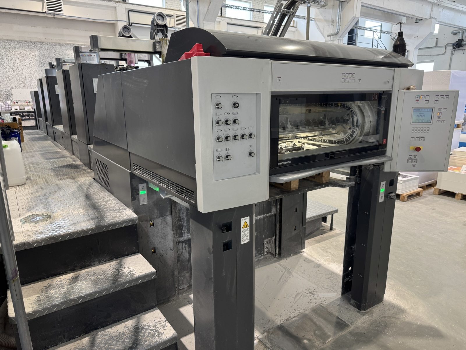 CP2000 Control Center software updated to Drupa Prinect Presscenter 2012 version<>Prinect INPRESS CONTROL<>Press Center Master Level<>Press Center Color Assistant<>Press Center Instant Gate<>Prinect Inkline 3000 automated ink supply system<>Air transfer System<>PowderStar AP 262<>Perfecting device fully automatic 2+2<>Water cooling machine<>(Press comes without chiller)<>Autoplate (semi-automatic plate loader)<>ALCOLOR VARIO dampening system<>CP 2000 Control Center<>Ink Line<>automatic Ink-Roller Washing device<>automatic blanket and impression cylinder washing unit<>Preset Plus in feeder and delivery<>ITC Ink temperature control<>dismantled<>In stock
