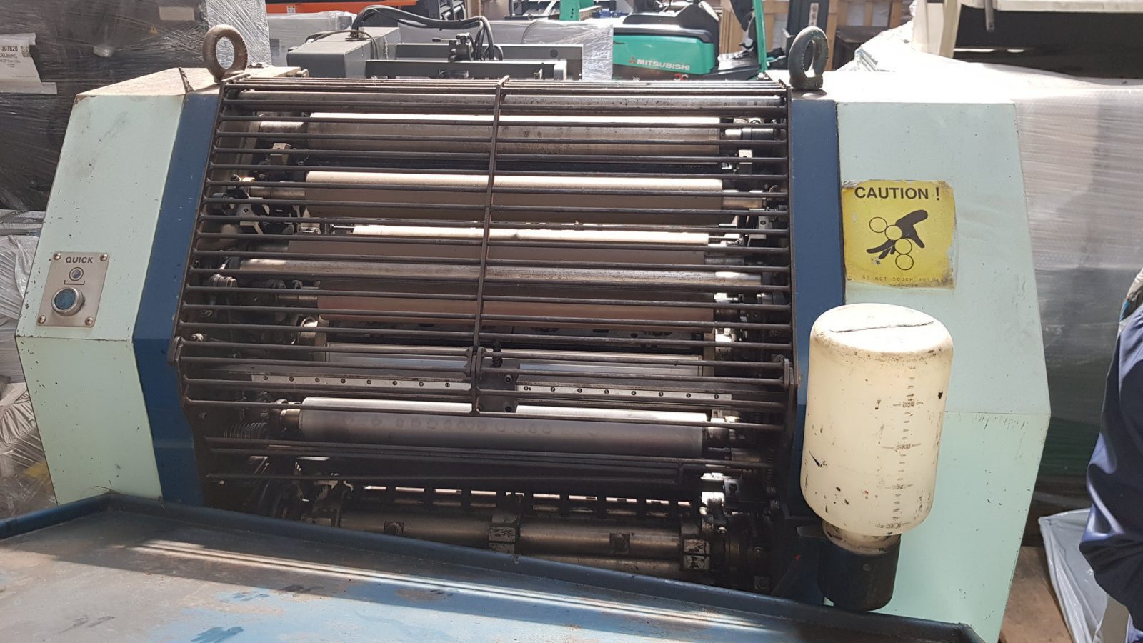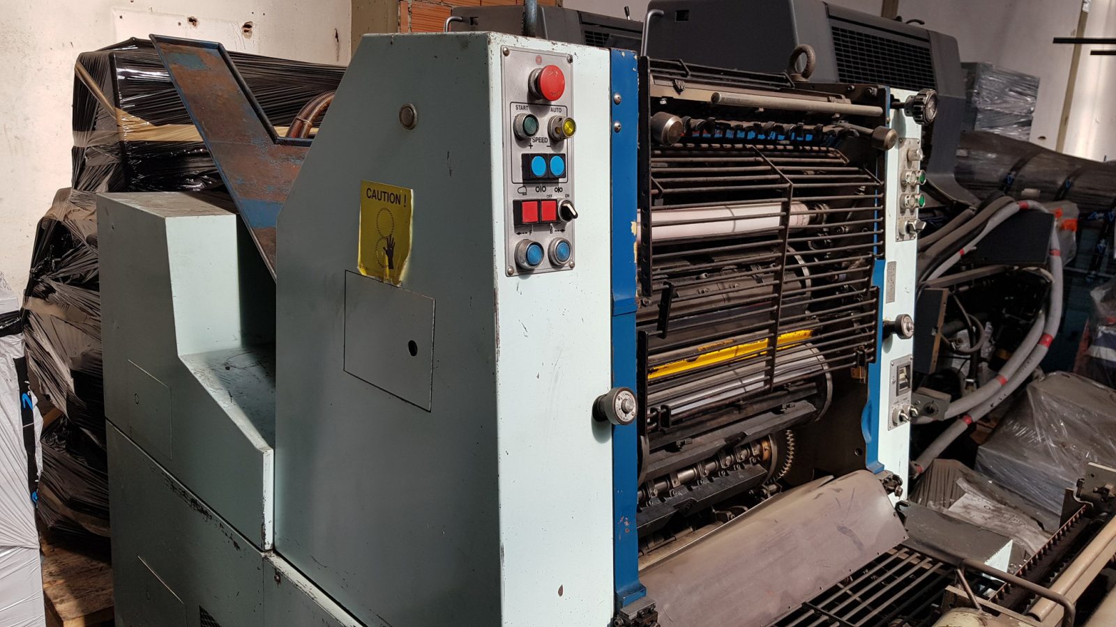 | Description: | Mod. Sakurai 52E<>s/n FJ098790<>Manuals and spares are coming with the machine<>Conventional dampening system<>Register control<>Numbering and perforating device<>Powder sprayer<>dismantled |